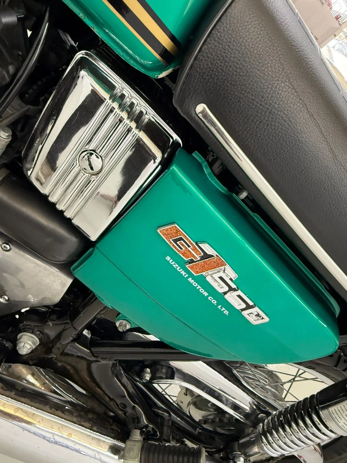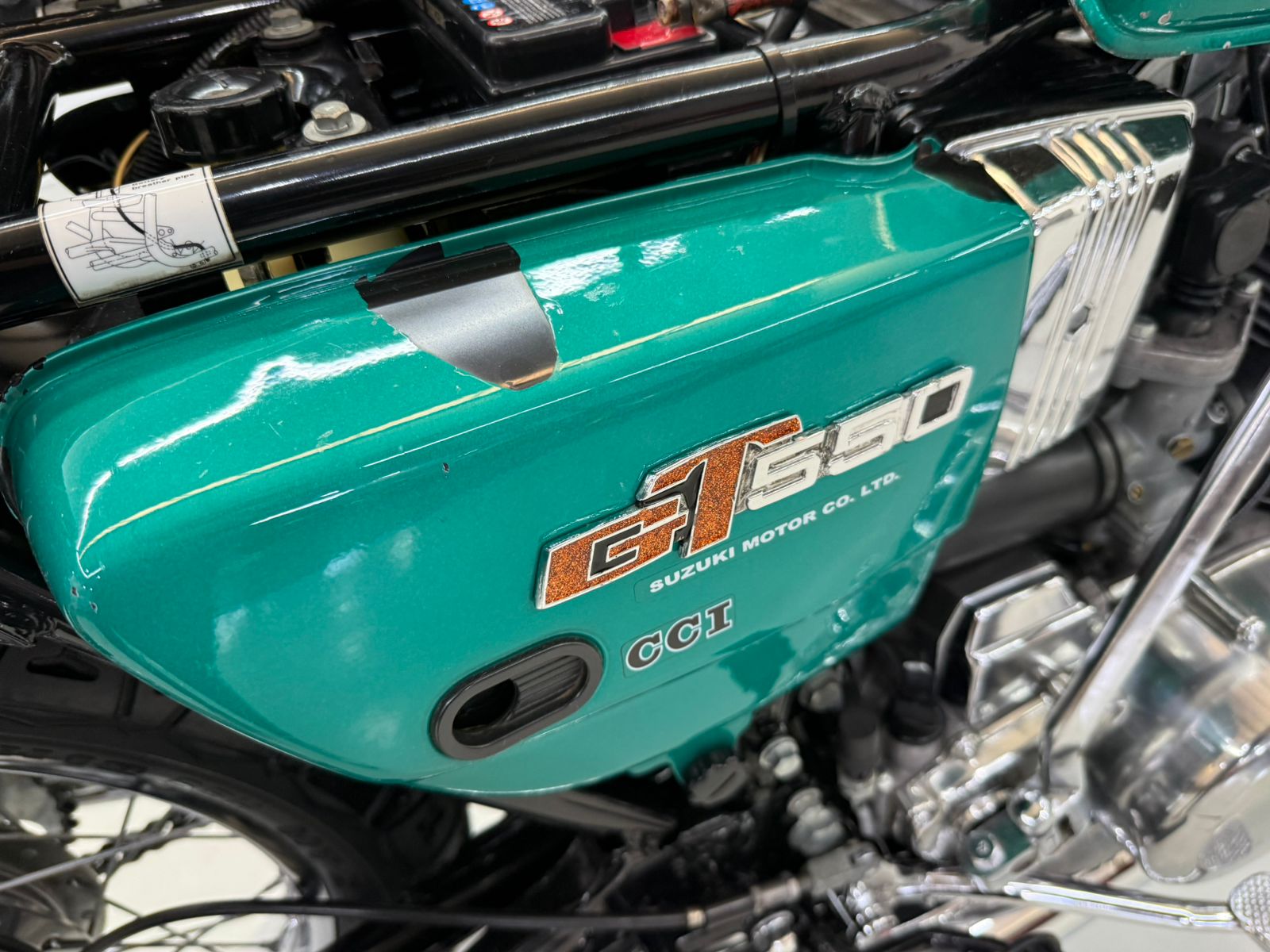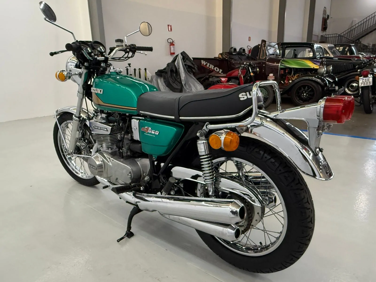 Disponibilizamos para venda uma Suzuki GT550 com 28 mil km originais, no Brasil desde 0km e com placa preta. A moto não tem nenhuma peça que não seja original, está em perfeito estado de conservação e funcionamento, e acompanha inclusive a caixa de ferramentas original Suzuki.